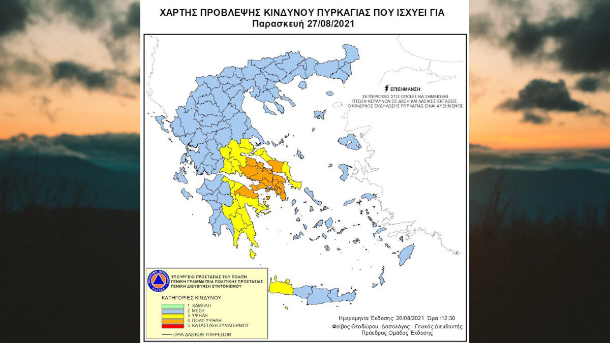 Χάρτης Πρόβλεψης Κινδύνου Πυρκαγιάς – 27/08/21