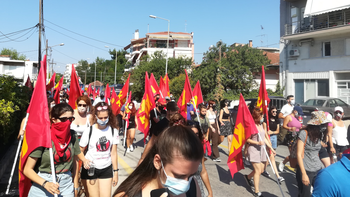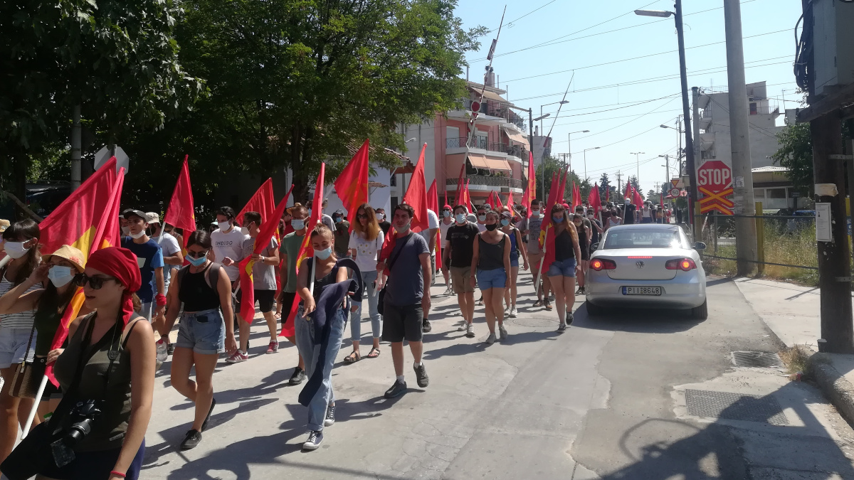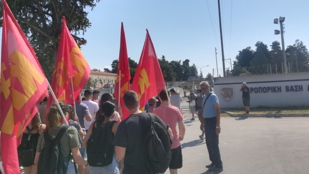 Κινητοποίηση στην 110 Πτέρυγα Μάχης στη Λάρισα, πραγματοποίησε σήμερα ένα τμήμα κατασκηνωτών που συμμετέχουν στο 29ο Αντιιμπεριαλιστικό Διήμερο της ΚΝΕ στο Στόμιο.