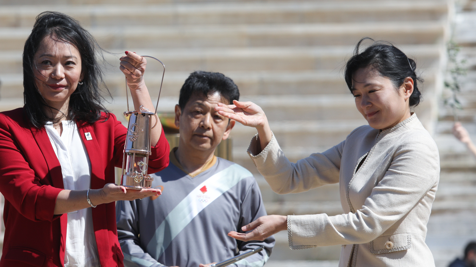 Ευχαρίστησε, επίσης, την Ελληνική Ολυμπιακή Επιτροπή για τη εμπέδωση του ολυμπιακού πνεύματος από την ελληνική κοινωνία και αφού σημείωσε ότι η Αρχαία Ολυμπία φωτίζει τον δρόμο προς το Τόκιο τόνισε ότι «όλοι οι Έλληνες ευχόμαστε καλή επιτυχία στους Ιάπωνες διοργανωτές των φετινών Ολυμπιακών Αγώνων».