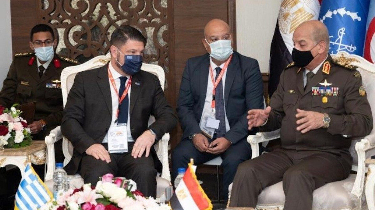 Χτες Τρίτη, ο Ν. Χαρδαλιάς συναντήθηκε με τον υπουργό Άμυνας της Αιγύπτου, Στρατηγό Mohamed Zaki, στο αιγυπτιακό εκθεσιακό κέντρο στο Κάιρο, όπου διεξάγεται η Έκθεση.