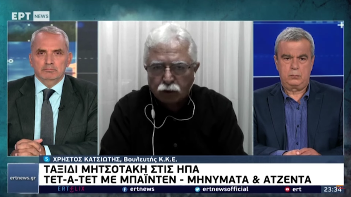 Ο λαός μας δεν πρέπει να έχει καμία προσδοκία από το ταξίδι του πρωθυπουργού στις ΗΠΑ, τόνισε ο Χρήστος Κατσώτης, μέλος της ΚΕ του ΚΚΕ και βουλευτής του Κόμματος σε εκπομπή της ERT News, το βράδυ της Παρασκευής, καθώς αυτό το ταξίδι θα φέρει μεγαλύτερη εμπλοκή της χώρας στα αμερικανοΝΑΤΟικά σχέδια στην περιοχή.