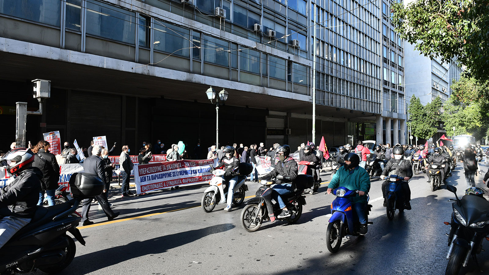Κατήγγειλαν ότι ενώ είχαν ζητήσει συνάντηση με τον υπουργό Εργασίας ο τελευταίος για μια ακόμη φορά κρύφτηκε. Στην διάρκεια της παρέμβασης μιλώντας ο Γιάννης Τασιούλας, πρόεδρος της Ομοσπονδίας Οικοδόμων Ελλάδας, χαιρέτισε τους απεργούς για την συμμετοχή τους στην σημερινή απεργία, ενώ στάθηκε στην ανάγκη συνέχισης του αγώνα για τις διεκδικήσεις για τη ζωή, την υγεία και τα δικαιώματα των εργαζομένων και των λαϊκών στρωμάτων.