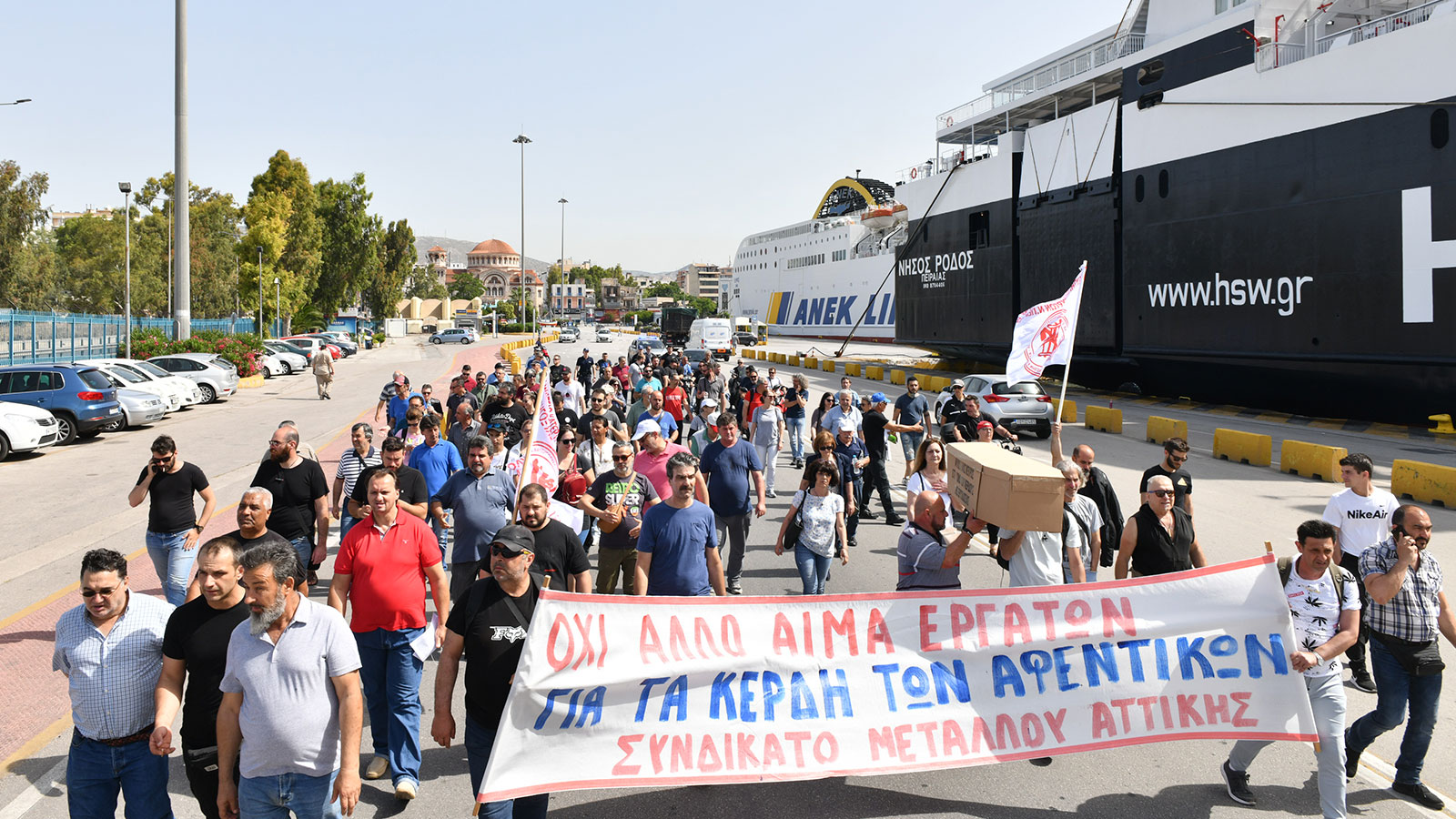 Νωρίτερα, σε συγκέντρωση στην πλατεία Καραϊσκάκη μίλησε ο Άκης Αντωνίου, πρόεδρος του Παραρτήματος Πειραιά του Συνδικάτου Μετάλλου, ο οποίος τόνισε ότι οι εργοδότες έχουν ξεσαλώσει, δεν τηρείται κανένα μέτρο ασφάλειας και δεν υπάρχει ο παραμικρός έλεγχος.