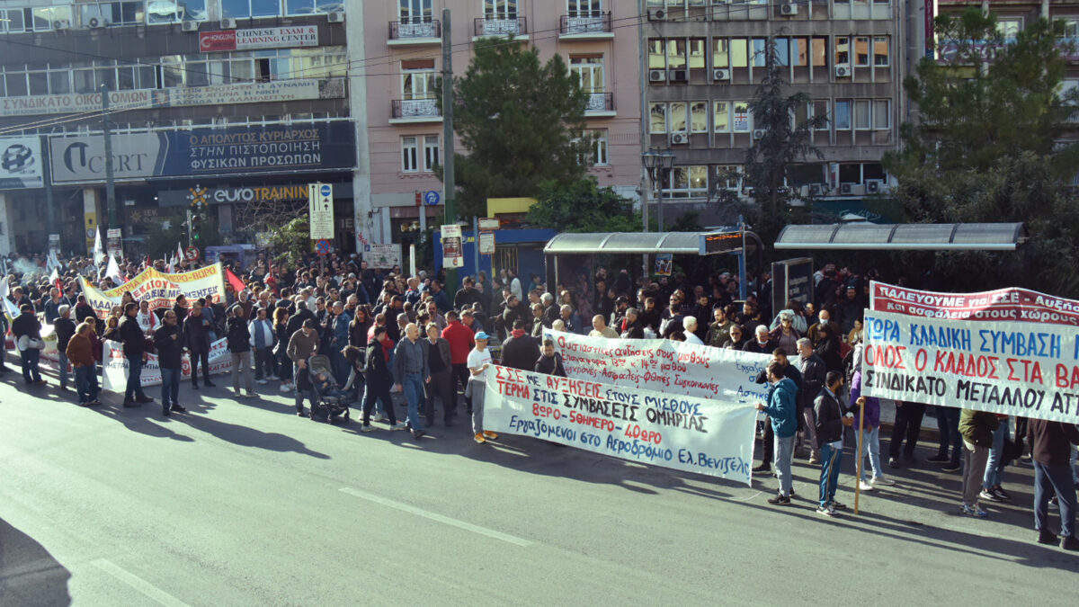 Οι απεργοί αφού έδωσαν τη μάχη της περιφρούρησης το πρωί, τώρα συγκεντρώνονται στις προσυγκεντρώσεις για να πορευθούν στα Προπύλαια.