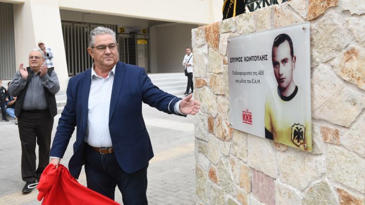 Πλήθος κόσμου συγκεντρώθηκε στον περιβάλλοντα χώρο του γηπέδου της ΑΕΚ, όπου έγιναν τα αποκαλυπτήρια τιμητικής πλακέτας στη μνήμη του Σπύρου Κοντούλη, αγωνιστή της ΕΑΜικής αντίστασης και θρυλικού ποδοσφαιριστή της ΑΕΚ. Η αποκάληψη της πλακέτας έγινε από τον ΓΓ της ΚΕ του ΚΚΕ, Δημήτρη Κουτσούμπα.