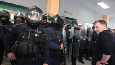 Από το πρωί ομάδες αστυνομικών σταματούν στον σωρό περαστικούς και διαδηλωτές, ακόμα και δημοσιογράφους και συνδικαλιστικά στελέχη, κάνοντας face control, απαιτώντας να ανοίγουν τσάντες και αναζητώντας «ενοχοποιητικά» στοιχεία.