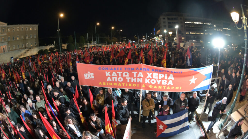Όπως γράφει και το πανό που κρατούν στο Σύνταγμα, «Κάτω τα χέρια από την Κούβα».
