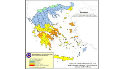 Χάρτης Πρόβλεψης Κινδύνου Πυρκαγιάς για σήμερα, Τρίτη 5 Ιούλη