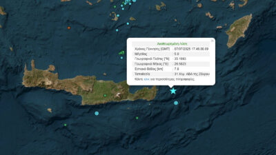 Κρήτη: Σεισμός 5 Ρίχτερ βορειοανατολικά της Ζάκρου