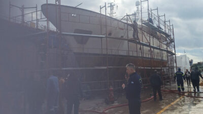 Πέραμα: Φωτιά σε σκάφος αναψυχής κατά την διάρκεια εργασιών σε ναυπηγείο