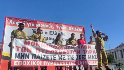 Μαχητικό “παρών” απ’ τους Εποχικούς Πυροσβέστες στην απεργιακή συγκέντρωση στα Πραπύλαια