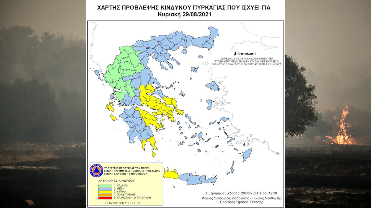 Χάρτης Πρόβλεψης Κινδύνου Πυρκαγιάς – 29/08/21