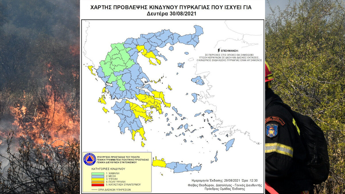 Σύμφωνα με τον χάρτη πρόβλεψης κινδύνου πυρκαγιάς που εκδίδει η Γενική Γραμματεία Πολιτικής Προστασίας, για σήμερα προβλέπεται υψηλός κίνδυνος (επιπέδου 3) σε: