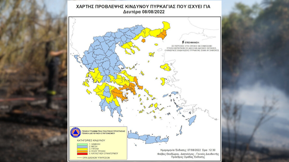Χάρτης Πρόβλεψης Κινδύνου Πυρκαγιάς για σήμερα, Δευτέρα 8 Αυγούστου