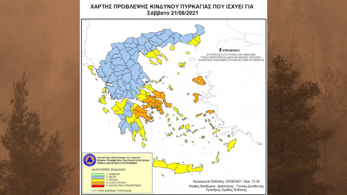 Χάρτης Πρόβλεψης Κινδύνου Πυρκαγιάς – 21/08/21