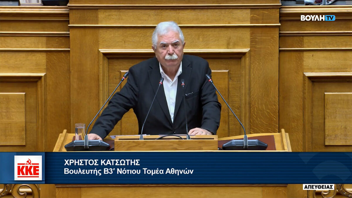 Η κυβέρνηση οφείλει να πάρει άμεσα μέτρα για τη σωστή διεξαγωγή της δίκης των Τεμπών που ξεκίνησε σήμερα, με απαράδεκτους όρους σε ακατάλληλη αίθουσα, στη Λάρισα, τόνισε ο βουλευτής του ΚΚΕ, Χρήστος Κατσώτης, ξεκινώντας την ομιλία του στην Ολομέλεια της Βουλής, επί του σχεδίου νόμου του υπ. Υποδομών – Μεταφορών για το δήθεν εκσυγχρονισμό και την αναβάθμιση των συγκοινωνιών που περιλαμβάνει αντιδραστικές ρυθμίσεις για τα ταξί, τα μέσα μαζικής μεταφοράς, τον σιδηδρόδρομο κ.α.