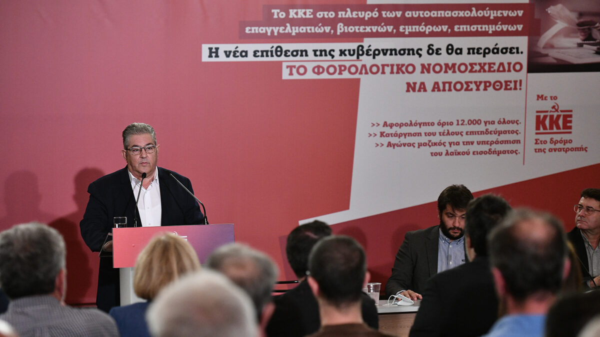 Στην εκδήλωση που διοργάνωσαν σήμερα η Κομματική Οργάνωση Αττικής και το Τμήμα ΕΒΕ της ΚΕ του ΚΚΕ με θέμα «Η νέα επίθεση της κυβέρνησης στους αυτοαπασχολούμενους επαγγελματίες, εμπόρους, βιοτέχνες, επιστήμονες και οι Θέσεις του ΚΚΕ» μίλησε ο ΓΓ της ΚΕ του ΚΚΕ, Δημήτρης Κουτσούμπας.