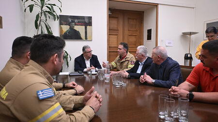 Ο ΓΓ της ΚΕ του ΚΚΕ Δημήτρης Κουτσούμπας, συνοδευόμενος από τους Γιώργο Μαρίνο, μέλος του ΠΓ και βουλευτή του ΚΚΕ, Θανάση Παφίλη, μέλος της ΚΕ και κοινοβουλευτικό εκπρόσωπο του ΚΚΕ και Χρήστο Κατσώτη, βουλευτή του ΚΚΕ, συναντήθηκε σήμερα στη Βουλή με αντιπροσωπεία των εποχικών και συμβασιούχων πυροσβεστών με επικεφαλής τους Θάνο Ψαρόπουλο, πρόεδρο του Πανελλήνιου Σωματείου Συμβασιούχων Πυροσβεστών και Βαγγέλη Τσουκαλά, πρόεδρο του Σωματείου Εποχικών Πυροσβεστών Ελλάδας.