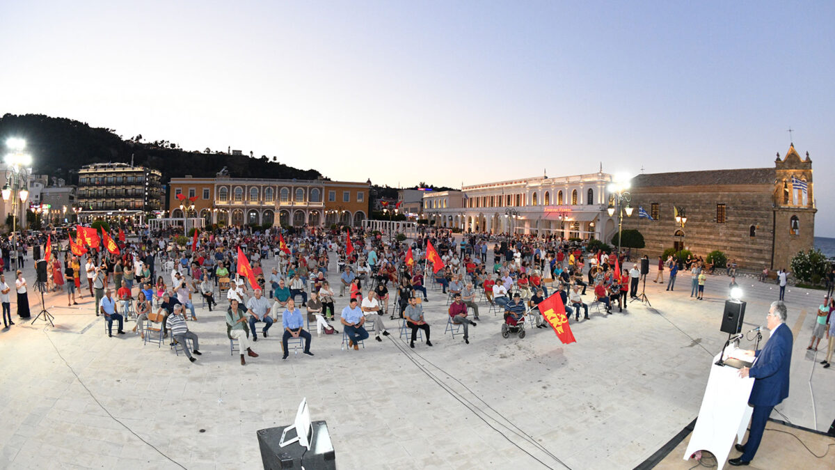 Σε ανοιχτή συγκέντρωση στην πλατεία Σολωμού της Ζακύνθου μίλησε σήμερα το βράδυ ο ΓΓ της ΚΕ του ΚΚΕ Δημήτρης Κουτσούμπας. Νωρίτερα μίλησε σε σύσκεψη με φορείς που έγινε στο αίθριο του Πολιτιστικού Κέντρου, στο χωριό Σαρακηνάδο και είχε θέμα «Οι εργαζόμενοι, οι βιοπαλαιστές αυτοαπασχολούμενοι – επαγγελματίες στον Τουρισμό πλήρωσαν πολλά, να μην πληρώσουν ξανά την κρίση. Μένουμε δυνατοί, οργανώνουμε την πάλη μας για να μην πληρώσουμε πάλι την κρίση τους».