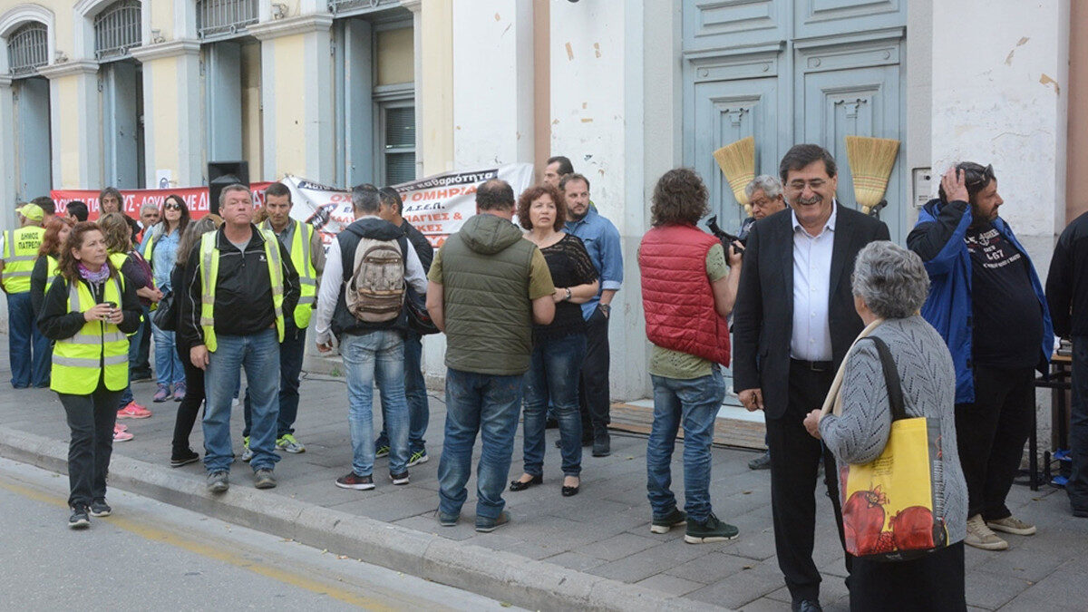 Φωτό αρχείου: Ο δήμρχος Πατρέων Κώστας Πελετίδης στο πλευρό συμβασιούχων οκταμηνιτών σε κινητοποίησή τους για το δικαίωμα στη δουλειά