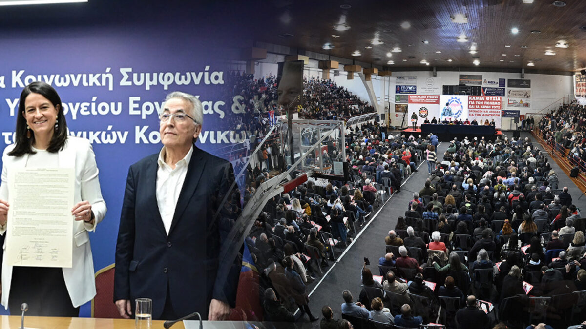 Από την άλλη, οι φωτογραφίες του εκατομμυριούχου – ισόβιου προέδρου της ΓΣΕΕ να εναγκαλίζεται με την κυβέρνηση και τις εργοδοτικές ενώσεις, υπογράφοντας το «μνημόνιο υποταγής» στις αξιώσεις των ομίλων με τίτλο «Κοινωνική Συμφωνία», δίνοντας για άλλη μια φορά τα διαπιστευτήρια της πλειοψηφίας της ΓΣΕΕ στο κράτος και την εργοδοσία.
