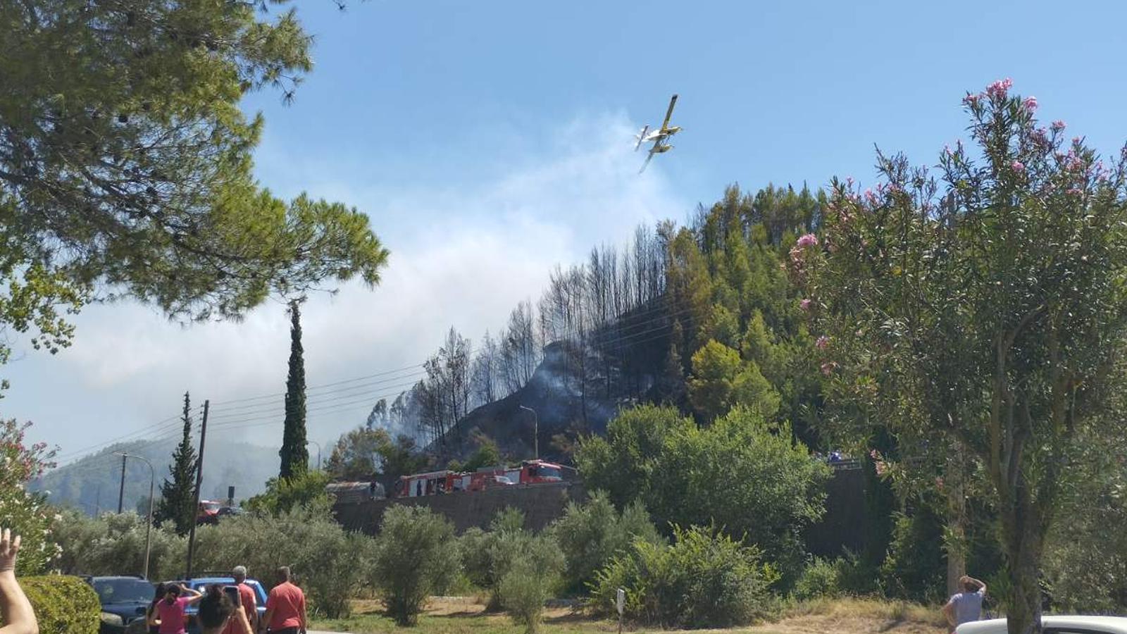 Επιχειρούν 21 πυροσβέστες με μια ομάδα πεζοπόρου τμήματος και 12 οχήματα, ενώ από αέρος πραγματοποιούν ρίψεις νερού τρία πυροσβεστικά αεροπλάνα.