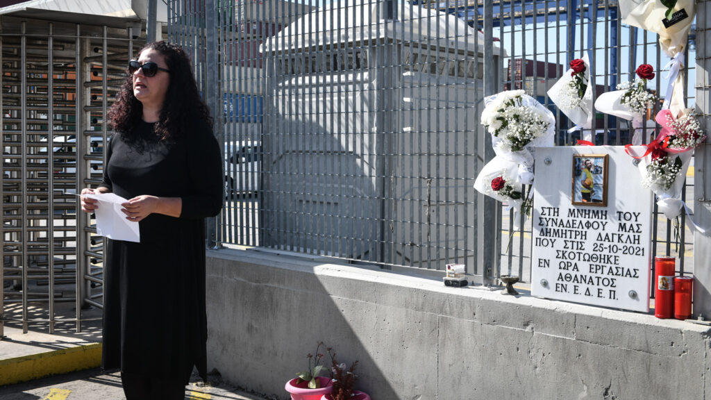 Με μια λιτή και σεμνή εκδήλωση στην πύλη της COSCO τιμήθηκε ο Δημήτρης Δαγκλής, ο εργάτης που πριν έναν χρόνο σκοτώθηκε την ώρα της εργασίας και ξεχείλισε την οργή των εργατών για τα εργοδοτικά εγκλήματα.