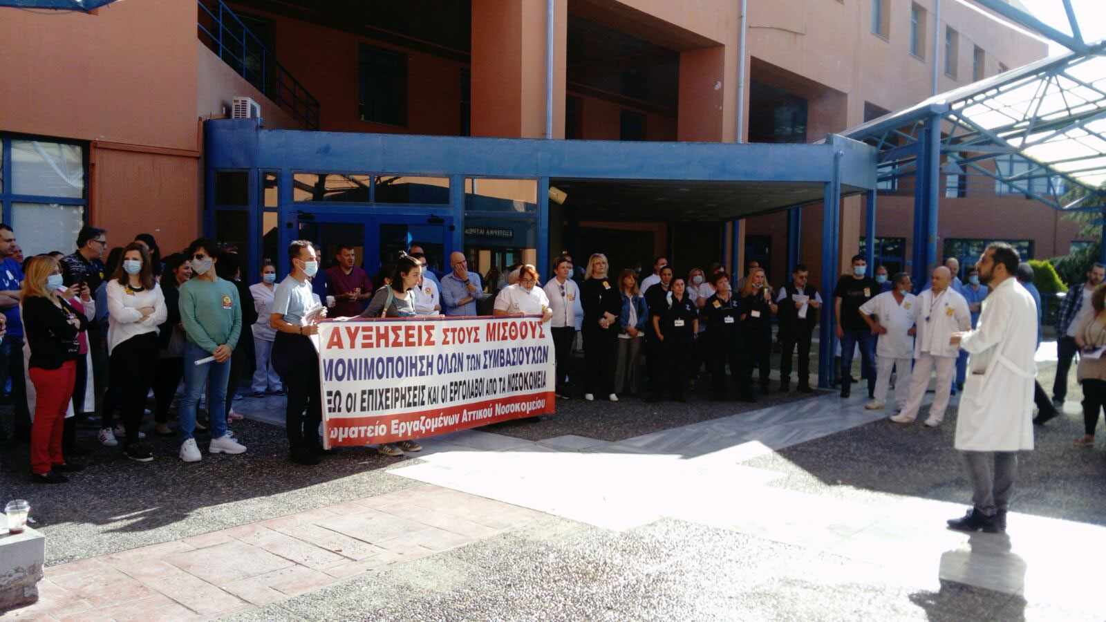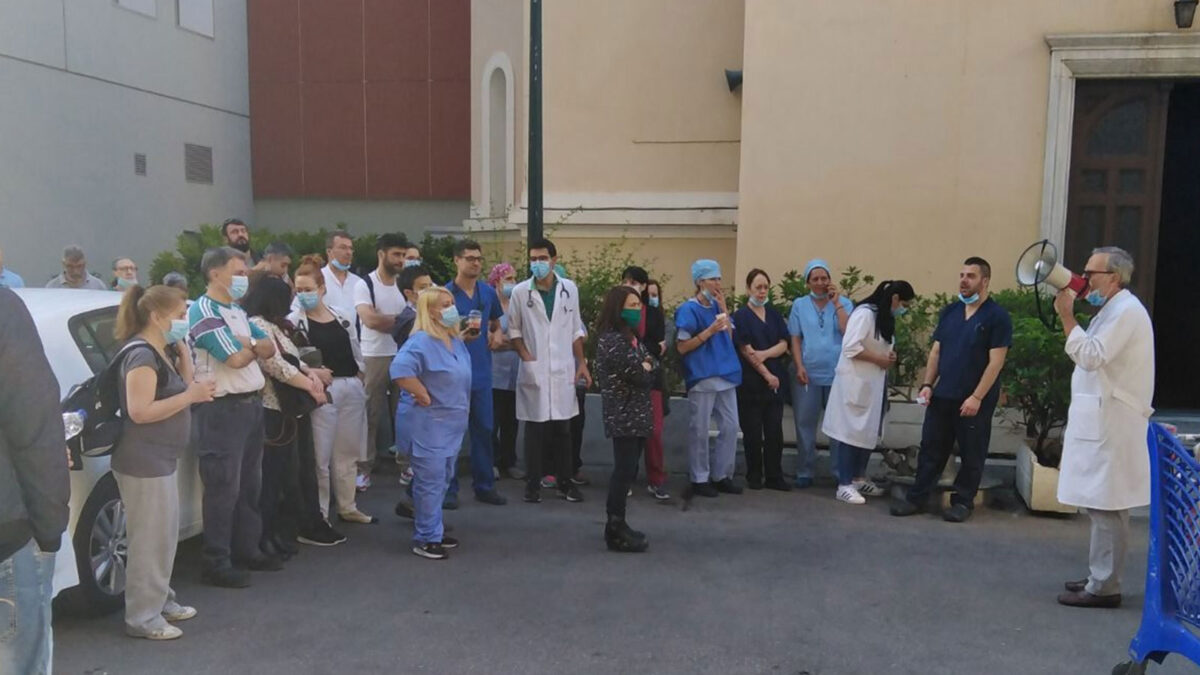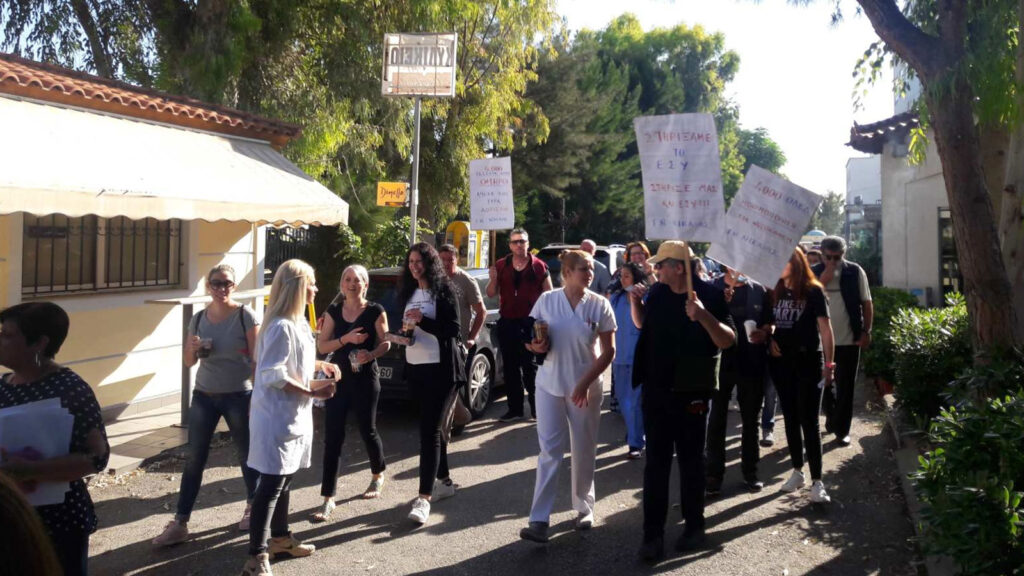 Στον «Ευαγγελισμό», μετά από κάλεσμα του Σωματείου Εργαζομένων του νοσοκομείου, αρχικά έγινε συγκέντρωση στα ΤΕΠ ενάντια στις απολύσεις συμβασιούχων, καθώς το επόμενο διάστημα πρόκειται να απολυθούν επικουρικοί και συμβασιούχοι μέσω ΟΑΕΔ.