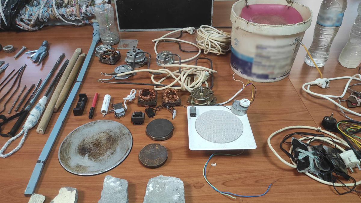 Ειδικότερα, κατά την διάρκεια της έρευνας συνολικά βρέθηκαν και κατασχέθηκαν: 32 γραμμάρια ηρωίνης, αυτοσχέδια μαχαίρια, σουβλιά και λάμες, 3 μεταλλικές και 2 ξύλινες ράβδοι, 3 μεταλλικοί γάντζοι και 4 αυτοσχέδιοι τροχοί ακονίσματος, κινητό τηλέφωνο, κάρτα sim και πλακέτα κινητού τηλεφώνου, 2 λίτρα αυτοσχέδιου αλκοόλ, 10 λίτρα αυτοσχέδιου μείγματος για την παρασκευή αλκοόλ, αυτοσχέδιος αποστακτήρας, 3 αυτοσχέδιοι κλέφτες ρεύματος, καλώδια και βίδες, ηλεκτρικά μάτια και μόνιτορ. Για τα ευρήματα ενημερώθηκε άμεσα η αρμόδια εισαγγελική Αρχή, καθώς και η Υποδιεύθυνση Ασφάλειας Τρικάλων, η οποία διενεργεί σχετική προανάκριση.