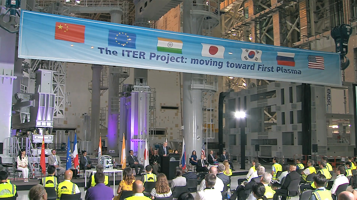 Εκπρόσωποι επτά εταίρων του ITER έλαβαν τον λόγο κατά την διάρκεια της τελετής, όλοι εξ αποστάσεως σε μαγνητοσκοπημένα βίντεο. Ο πρόεδρος της Νότιας Κορέας Μουν Τζε-Ιν χαιρέτισε το μεγαλύτερο επιστημονικό πρόγραμμα στην ιστορία της ανθρωπότητας» και την έρευνα «των νέων επιστημονικών και τεχνολογικών συνόρων», με το «κοινό όνειρο για την παραγωγή καθαρής και ασφαλούς ενέργειας μέχρι το 2050».