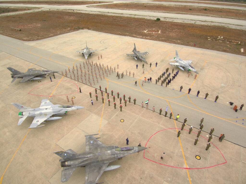 Την Παρασκευή 2 Οκτωβρίου 2020, αναχώρησε από την αεροπορική βάση της Σούδας η αποστολή της Πολεμικής Αεροπορίας των Ηνωμένων Αραβικών Εμιράτων (ΗΑΕ) μετά την ολοκλήρωση της συνεκπαίδευσής της με τις Ένοπλες Δυνάμεις της χώρας μας, η οποία σχεδιάστηκε και συντονίστηκε από το ΓΕΕΘΑ και από το Γενικό Επιτελείο Ενόπλων Δυνάμεων των ΗΑΕ.