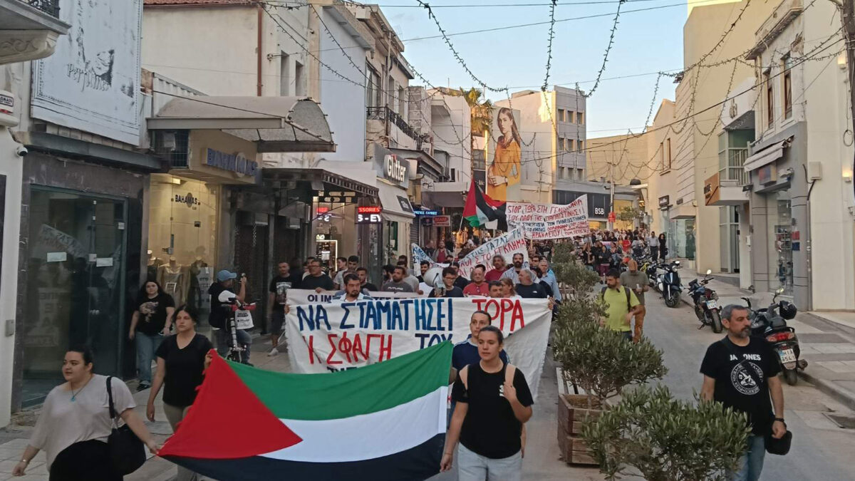 Δεκάδες φορείς, εργατικά σωματεία και φοιτητικοί σύλλογοι απεύθυναν κάλεσμα αγωνιστικού ξεσηκωμού στον Ηρακλειώτικο λαό για τα συνεχή εγκλήματα του κράτους – δολοφόνου του Ισραήλ που διαπράττει σε βάρος του Παλαιστινιακού λαού.
