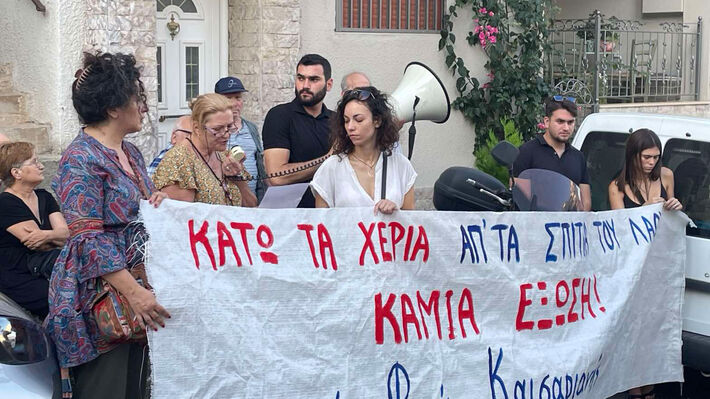 Το σπίτι που βγήκε στο σφυρί από τα κοράκια είναι η πρώτη κατοικία ενός βιοπαλαιστή ο οποίος έχει καταθέσει αίτηση σύνταξης την οποία ακόμη δεν έχει πάρει. Πριν λίγες μέρες στάλθηκε χαρτί για βίαιη έξωση, σε περίπτωση που δεν εγκαταλείψει το σπίτι του στις 27 Ιούλη.