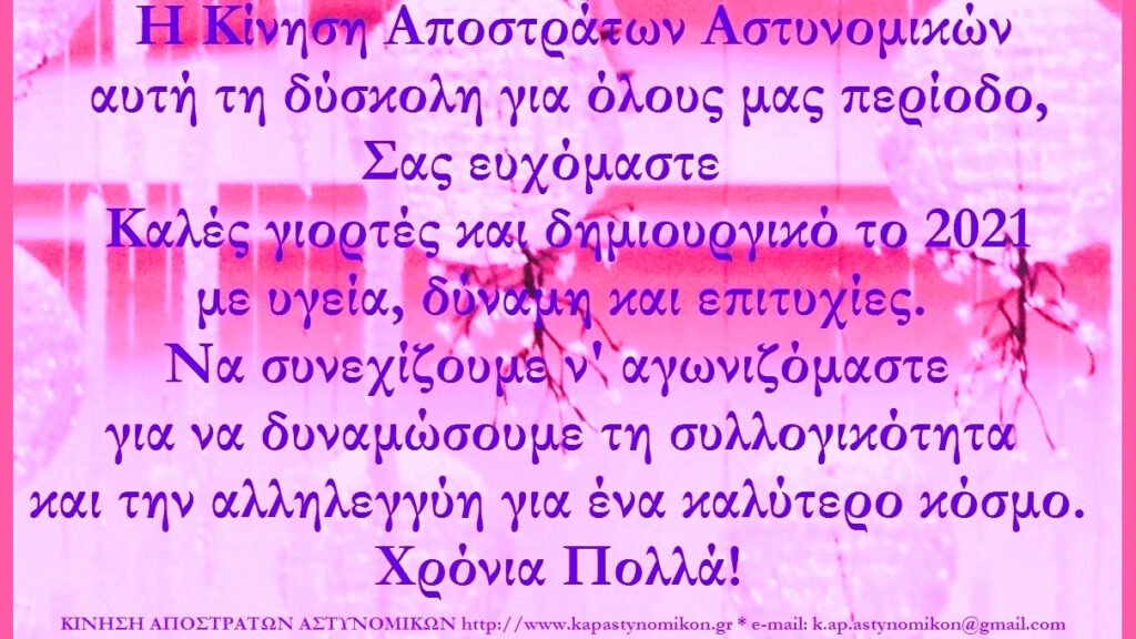 Ευχές από την Κίνηση Αποστράτων Αστυνομικών