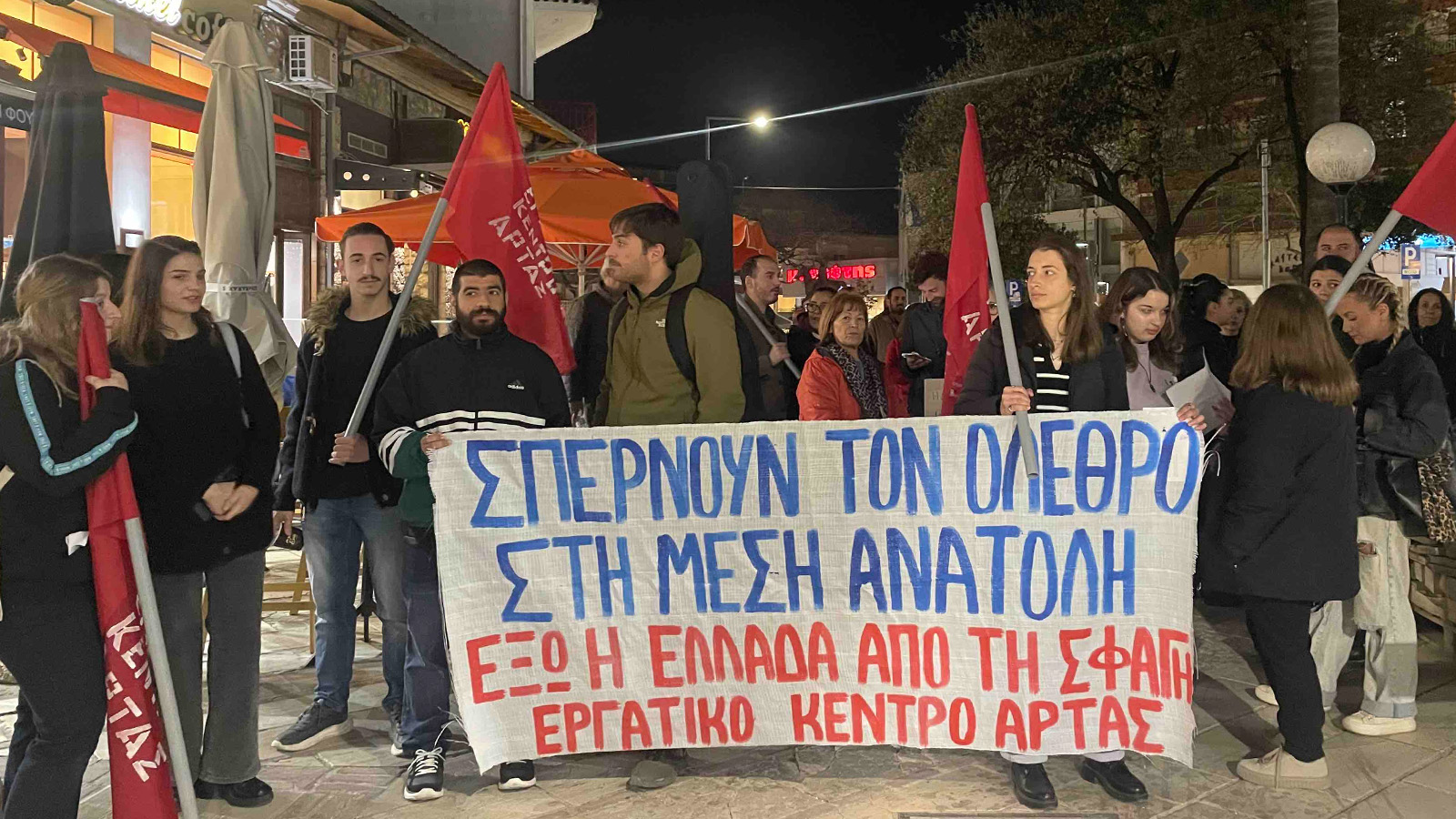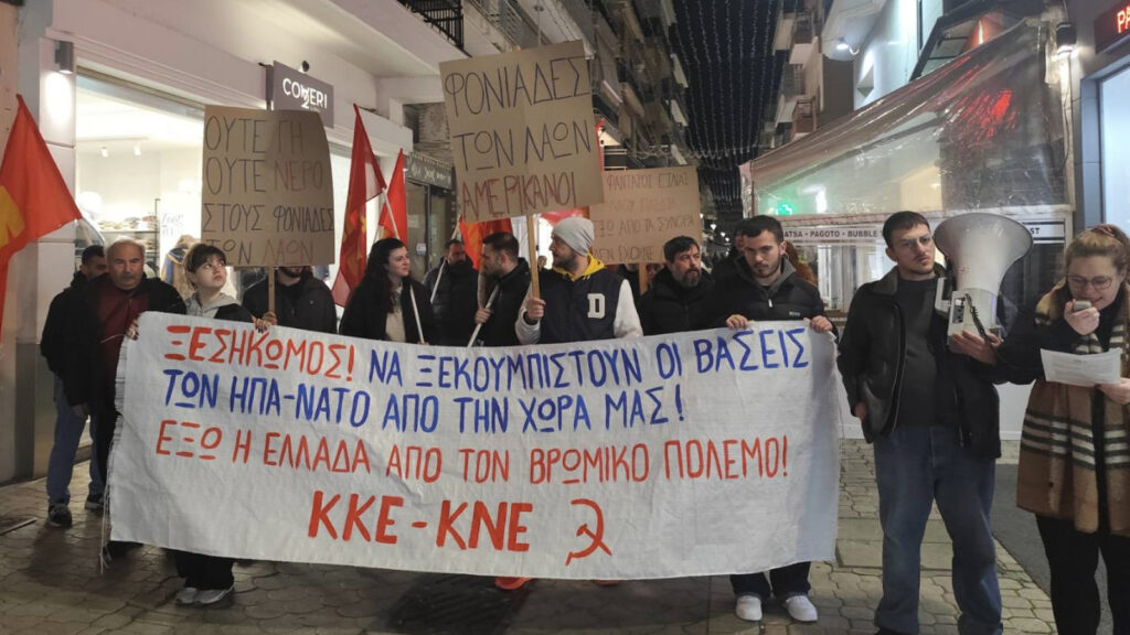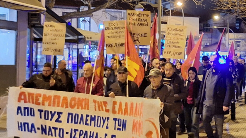 Με μαχητικές κινητοποιήσεις οι Οργανώσεις του ΚΚΕ και της ΚΝΕ στο Βόλο και στα Τρίκαλα και πολλές άλλες πόλεις κατήγγειλαν στον λαό τη νέα στρατιωτική επίθεση των ΗΠΑ – Ισραήλ στο Ιράν, επισημαίνοντας ότι αυτή οδηγεί τους λαούς της περιοχής στον όλεθρο για τα συμφέροντα των ιμπεριαλιστών. Κατήγγειλαν, επίσης, τις εγκληματικές ευθύνες της σημερινής κυβέρνησης και των κυβερνήσεων διαχρονικά που έχουν μετατρέψει την χώρα σε αμερικανονατοϊκό ορμητήριο πολέμου για την αναβάθμιση των συμφερόντων της αστικής τάξης της χώρας με ανυπολόγιστους κινδύνους για το λαό της.