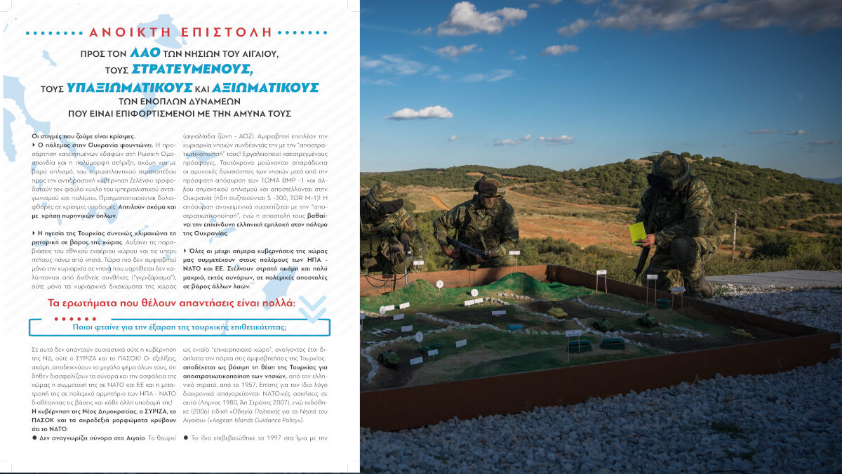 Εργαλειοποιεί κατατρεγμένους πρόσφυγες. Ταυτόχρονα μειώνονται απαράδεκτα οι αμυντικές δυνατότητες των νησιών μετά από την πρόσφατη απόσυρση των ΤΟΜΑ, ΒΜΡ-1 και άλλου σημαντικού οπλισμού και αποστέλλονται στην Ουκρανία (ήδη συζητιούνται S-300, TOR M-1)! Η απόσυρση αντικειμενικά σχετίζεται με την «αποστρατιωτικοποίηση», ενώ η αποστολή τους βαθαίνει την επικίνδυνη ελληνική εμπλοκή στον πόλεμο της Ουκρανίας.