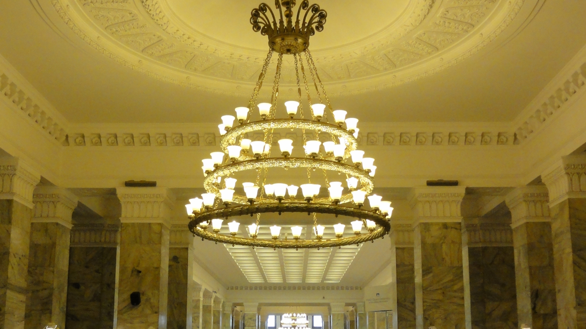 Το Παλάτι Πολιτισμού και Επιστημών (PKIN – Palac Kultury i Nauki). Η κατασκευή ξεκίνησε το 1952 και διήρκεσε μέχρι το 1955. Το Παλάτι Πολιτισμού κι Επιστημών ήταν σύμβολο της πολωνο-σοβιετικής φιλίας. Η ανοικοδόμηση της Βαρσοβίας ξεκίνησε από την πρώτη μέρα της απελευθέρωσης της πόλης από τις Πολωνικές Μεραρχίες που πολεμούσαν μαζί με τον Κόκκινο Στρατό στη Μεγάλη Πορεία από το Στάλινγραντ ως το Βερολίνο. Η πόλη είχε ισοπεδωθεί συθέμελα, από τα υποχωρούντα Ναζιστικά στρατεύματα, σε αντίποινα για την ηρωική αντίσταση και τη μεγάλη εξέγερση του λαού της Βαρσοβίας (1η Αυγούστου 1944 και για 63 μέρες).