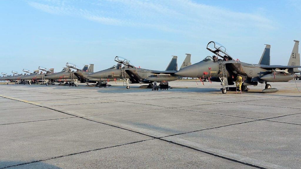 Φώτο Αρχείου / Αποχώρηση των Μαχητικών Αεροσκαφών F-15Ε της USAFE και του προσωπικού υποστήριξης που είχαν μετασταθμεύσει στην 110 Πτέρυγα Μάχης στη Λάρισα – Νοέμβρης 2021/ Πηγή: EUROKINISSI