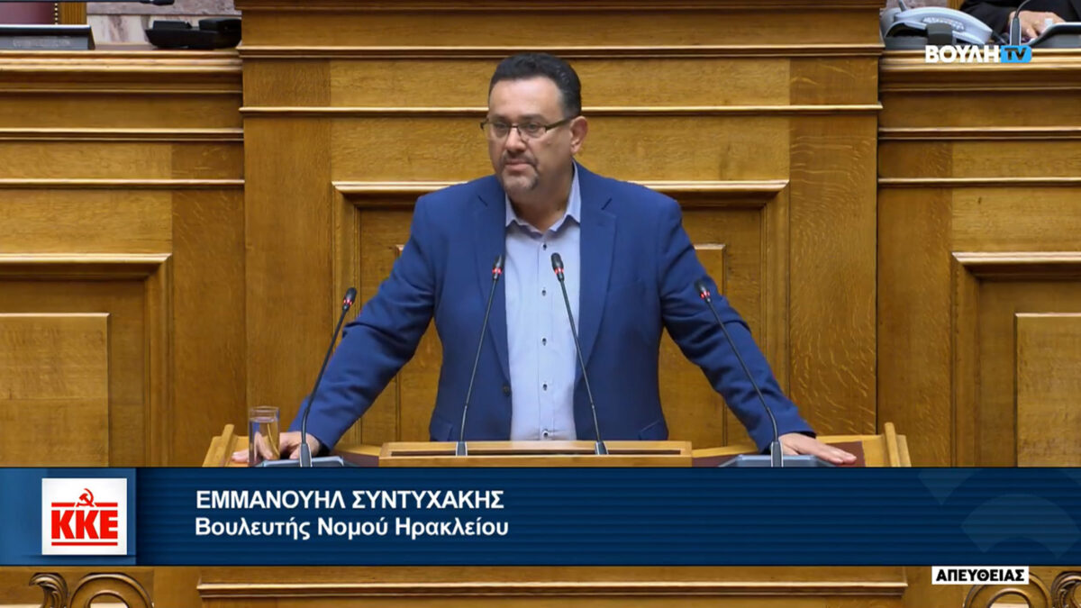 Η πρόταση για την διακομματική επιτροπή είναι με «σημαδεμένη τράπουλα», όπως και οι αντίστοιχες προτάσεις των ΣΥΡΙΖΑ – ΠΑΣΟΚ γιατί έχουν ως δεδομένη την πολιτική της ΚΑΠ, την πολιτική της ΕΕ, την ενίσχυση της πολεμικής οικονομίας, επισήμανε μεταξύ άλλων ο Μανώλης Συντυχάκης βουλευτής του ΚΚΕ μιλώντας στην Ολομέλεια της Βουλής.