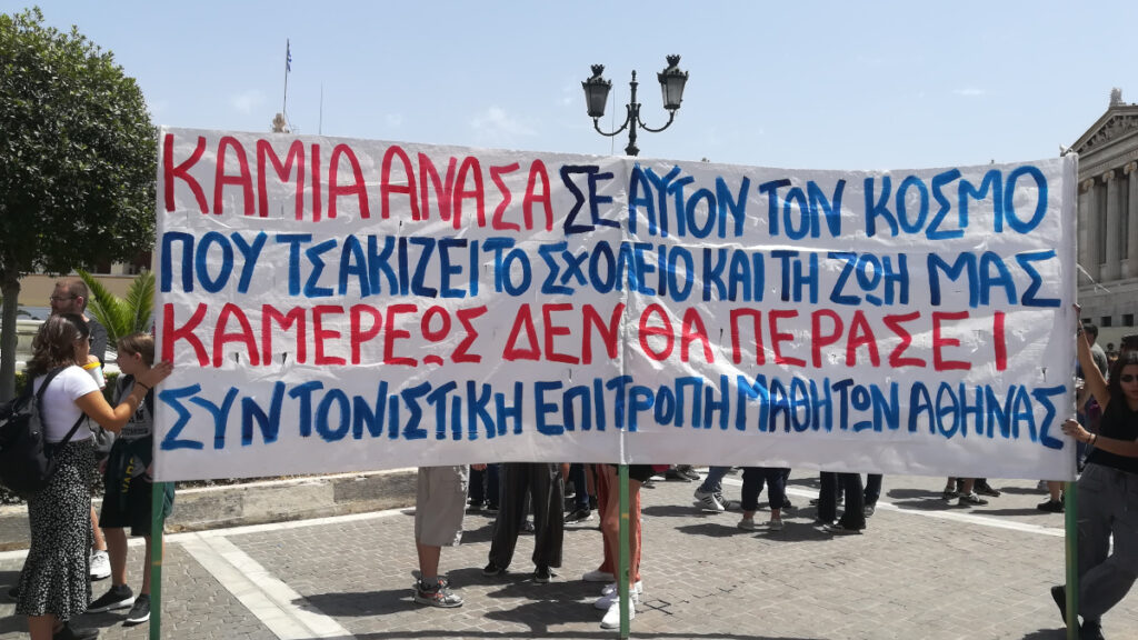 «Δεν θα τους περάσει! Δεν θα το περάσουν!» δήλωσαν οι μαθητές διεκδικώντας: Να παρθεί τώρα πίσω το νομοσχέδιο που έφεραν μέσα στην πανδημία. Να μην εφαρμοστεί η τροπολογία με τις κάμερες. Κρατική χρηματοδότηση για κάλυψη των κενών σε καθηγητές, καθαριότητα, μετακίνηση, σχολικές υποδομές, «σχολείο δημιουργικό – όχι κέντρο εξεταστικό».