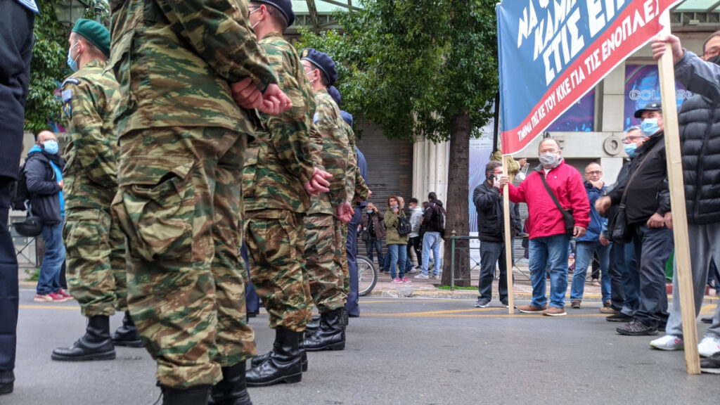 Με το σύνθημα «Οι φαντάροι είναι του λαού παιδιά, έξω από τα σύνορα δεν έχουνε δουλειά», καθώς και με χειροκροτήματα υποδέχθηκαν οι διαδηλωτές τους στρατευμένους οι οποίοι συμμετείχαν στην αντιιμπεριαλιστική πορεία του Πολυτεχνείου.