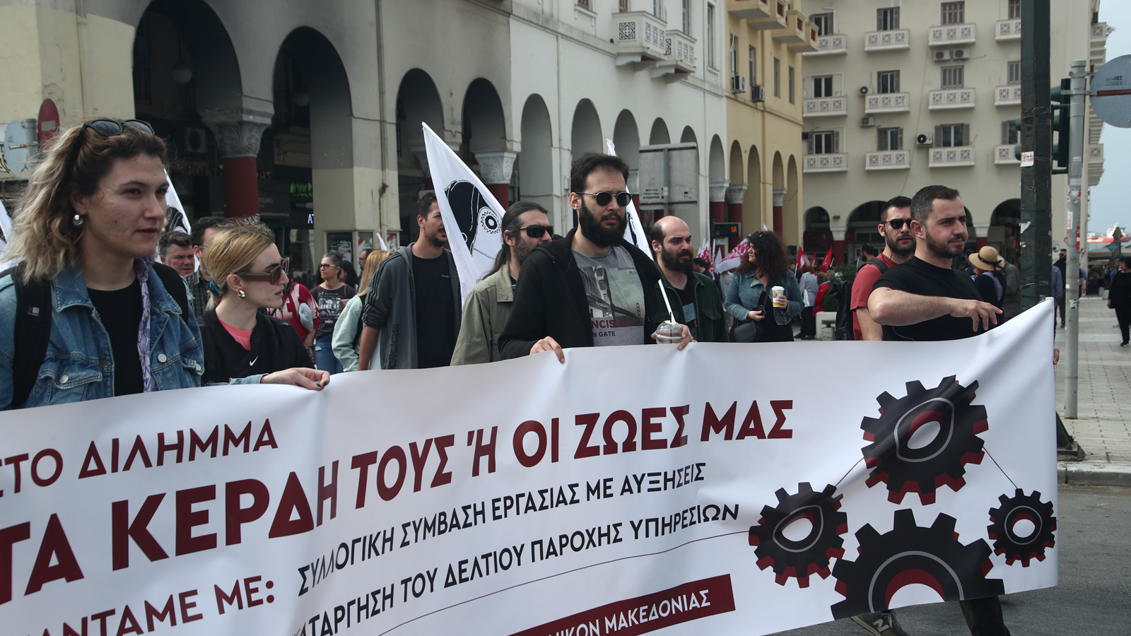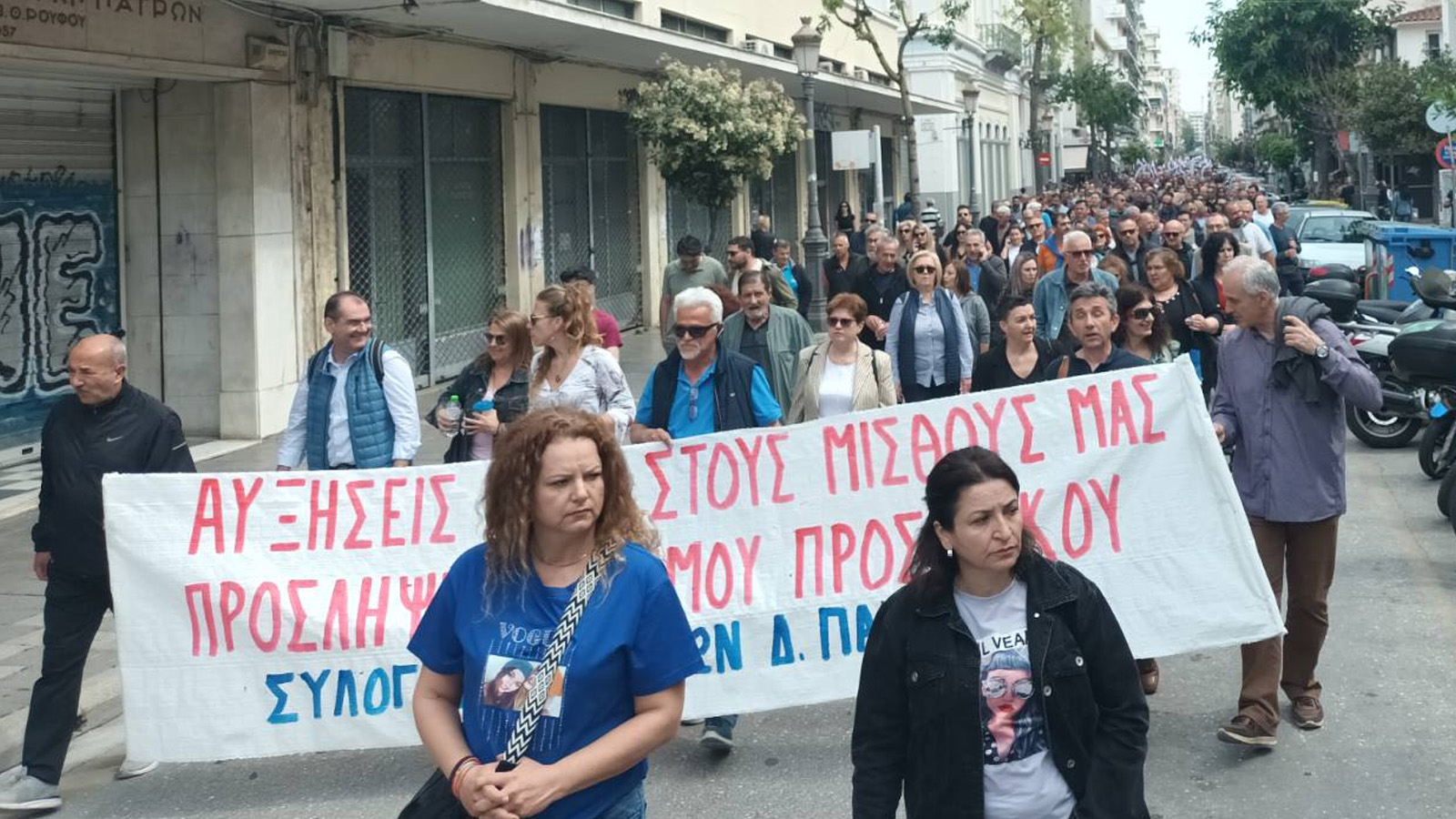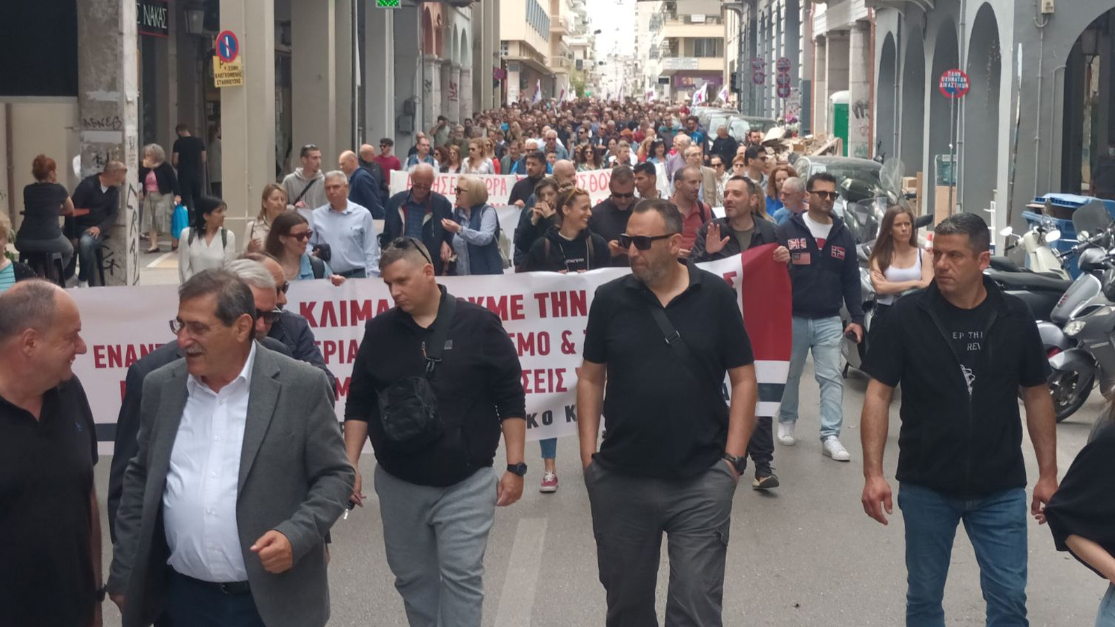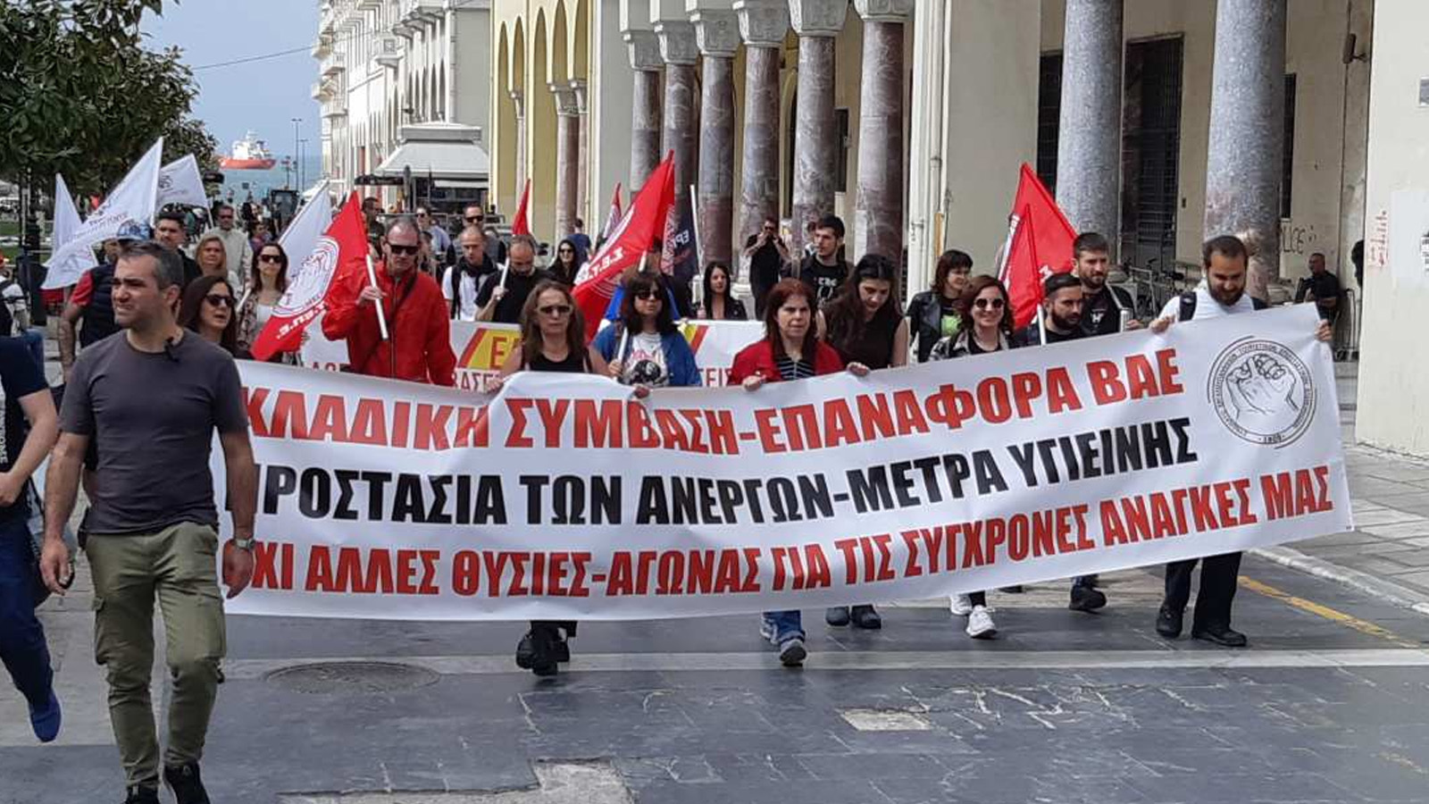 Στην κεφαλή της πορείας βρίσκονται οχήματα της ΔΕΥΑΠ και το πανό του Εργατικού Κέντρου, ενώ ακολουθούν τα μπλοκ των συνδικάτων. Καλούν όλοι σε συνέχεια της πάλης για όσα έχουν ανάγκη σήμερα οι εργαζόμενοι και ο λαός.