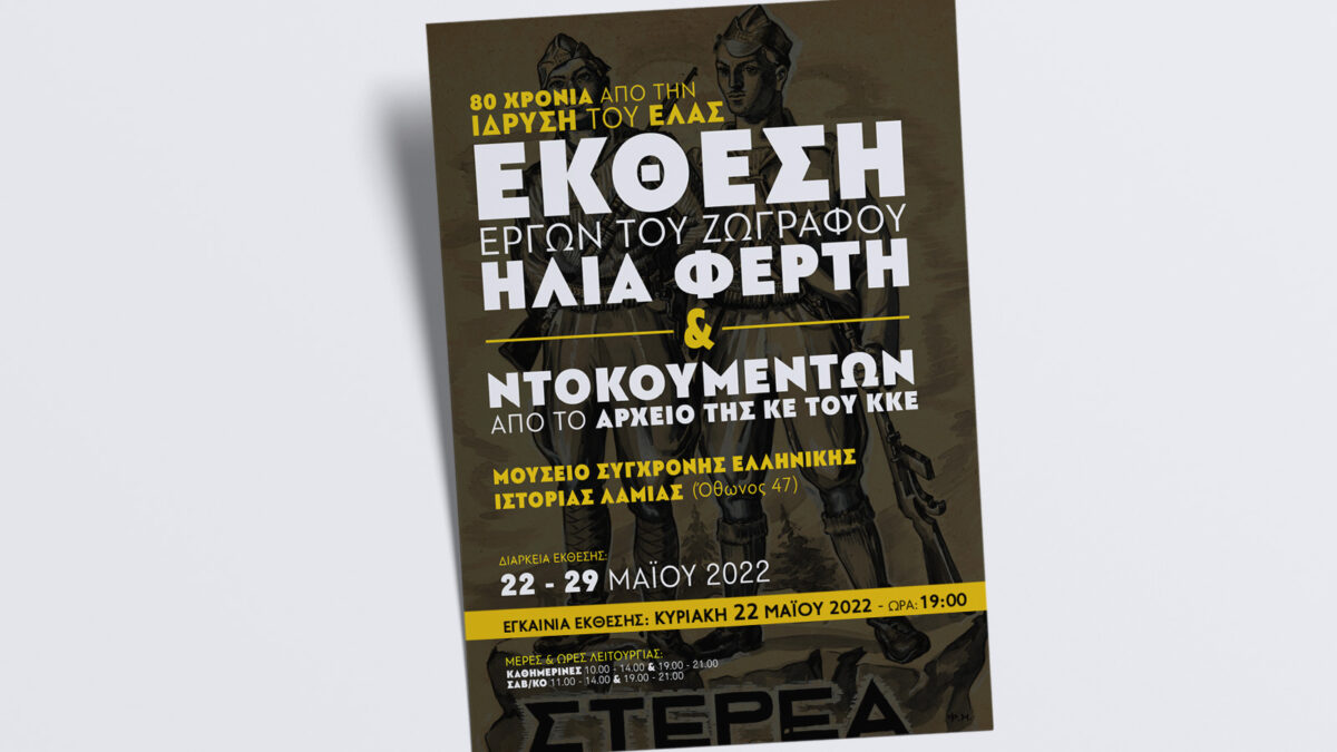 Η Τομεακή Επιτροπή Φθιώτιδας του ΚΚΕ, σε συνεργασία με τη «Σύγχρονη Εποχή» και την Επιτροπή Ιστορικού Αρχείου της ΚΕ του ΚΚΕ, διοργανώνουν Έκθεση, αφιερωμένη στα 80 χρόνια από την ίδρυση του ΕΛΑΣ, με έργα του Λαμιώτη ζωγράφου Ηλία Φέρτη, καθώς και ντοκουμέντα από τη δράση του ΚΚΕ, του ΕΛΑΣ, του ΕΑΜ κι άλλων ΕΑΜικών οργανώσεων.