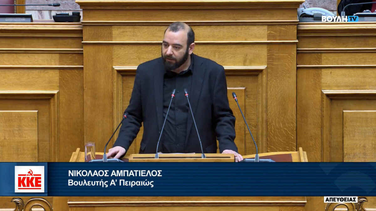 Ο Ν. Αμπατιέλος κατήγγειλε την απαίτηση των εφοπλιστών να υπογράφουν οι ναυτεργάτες «θανατόχαρτα» για να δηλώνουν «οικειοθελώς» ότι πηγαίνουν στις εμπόλεμες ζώνες, αναφέροντας ότι το συγκεκριμένο τμήμα του κεφαλαίου θεωρεί ότι τα πεδία πολεμικών συγκρούσεων είναι και πολύ μεγάλες επενδυτικές ευκαιρίες, χτισμένες πάνω στο αίμα και τη σκληρή εκμετάλλευση των εργαζομένων. Και αυτός είναι ένας λόγος, συνέχισε, που η κυβέρνηση έχει βουτήξει τη χώρα στο μακελειό, για να θησαυρίζουν οι Έλληνες εφοπλιστές, για να αναβαθμίζουν οι ενεργειακοί όμιλοι τη θέση τους στον ενεργειακό χάρτη, για να κάνουν συμβόλαια οι πολεμικές βιομηχανίες και οι κατασκευαστικές εταιρείες. «Όλα τα κόμματα, όταν μιλάτε για ”εθνικό συμφέρον”, στην πράξη εννοείτε το εφοπλιστικό συμφέρον, το συμφέρον των ενεργειακών ομίλων, των πολεμικών βιομηχανιών, των κατασκευαστικών εταιρειών», επισήμανε χαρακτηριστικά.