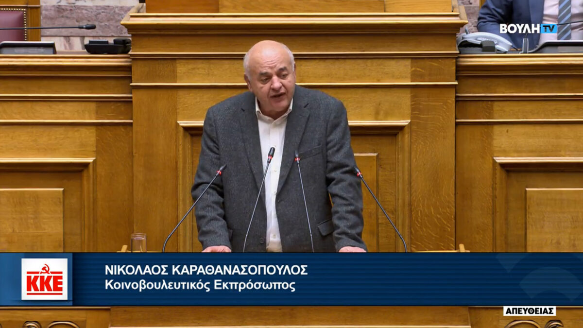 Τα συλλυπητήρια του ΚΚΕ στις οικογένειες των δύο θυμάτων από τις πλημμύρες εξέφρασε οκοινοβουλευτικός εκπρόσωπος του Κόμματος, Νίκος Καραθανασόπουλος, ξεκινώντας την ομιλία του στην Ολομέλεια της Βουλής επί του σχεδίου νόμου του υπουργείου Εσωτερικών.