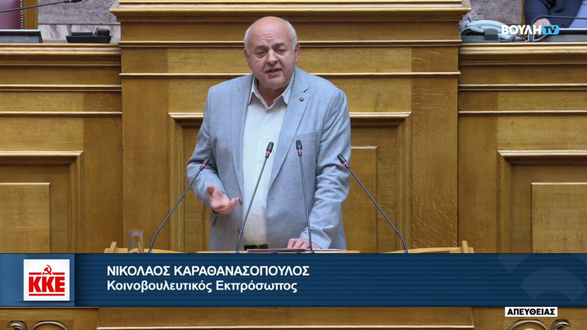 Την προσπάθεια της κυβέρνησης και ιδιαίτερα του πρωθυπουργού Κυριάκου Μητσοτάκη κατά το σημερινό μήνυμά του για το σκάνδαλο του ΟΠΕΚΕΠΕ να συγκαλύψει τις ευθύνες της πολιτικής του, αλλά και τις ποινικές που ενδεχόμενα υπάρχουν σε υπουργούς, βουλευτές και άλλους ανέδειξε ο Νίκος Καραθανασόπουλος, κοινοβουλευτικός εκπρόσωπος του ΚΚΕ, μιλώντας σήμερα στην Ολομέλεια της Βουλής στο πλαίσιο της συζήτησης του νομοσχεδίου για το Κοινωνικό Κλιματικό Ταμείο και το Ταμείο Εκσυγχρονισμού.