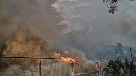Οι φλόγες από το Ανατολικό Διαμέρισμα είναι εμφανείς σχεδόν από όλη την πόλη. Απειλούνται ο Ρωμανός, το Γηροκομείο και άλλες περιοχές, ενώ εκκενώθηκαν το Καραμανδάνειο Παιδιατρικό Νοσοκομείο και το Κωνσταντοπούλειο Ευγηρειο Ίδρυμα.