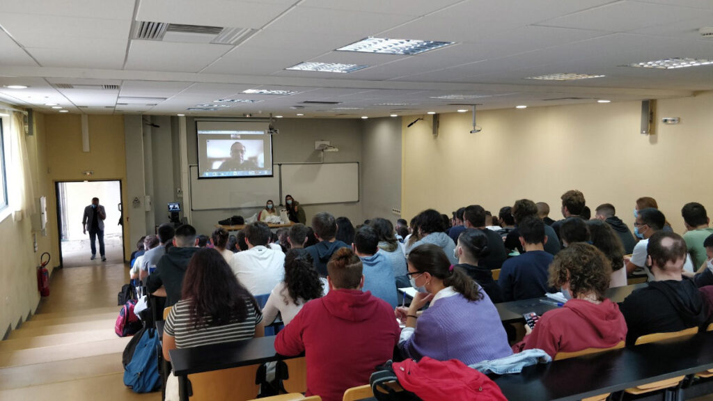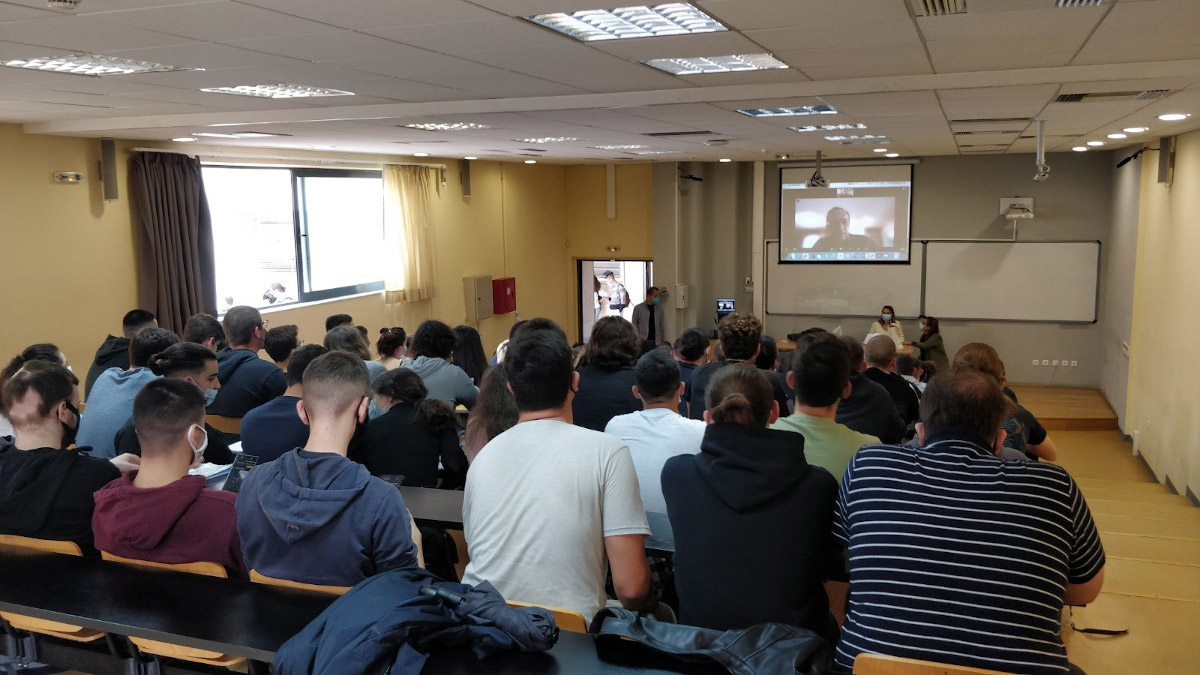 - Το «υβριδικό» μάθημα εφαρμόζεται στο έπακρο με τους φοιτητές να βρίσκονται στο αμφιθέατρο τους και οι καθηγητές να πραγματοποιούν εξ αποστάσεως διδασκαλία είτε από το σπίτι τους είτε από διπλανές αίθουσες.