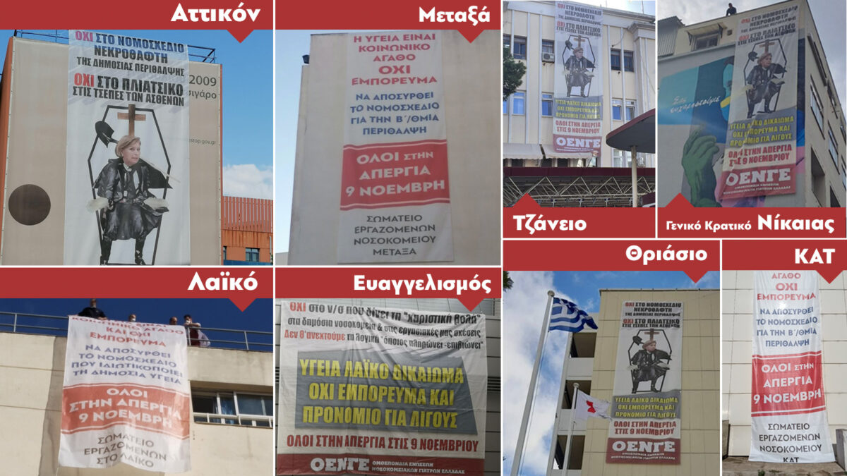 «Ενόχλησαν τα πανό της ΟΕΝΓΕ που αναρτήθηκαν χθες σε μια σειρά νοσοκομεία με σύνθημα “Όχι στο νομοσχέδιο νεκροθάφτη της δημόσιας περίθαλψης. Όχι στο πλιάτσικο στις τσέπες των ασθενών. Υγεία λαϊκό δικαίωμα, όχι εμπόρευμα και προνόμιο για λίγους”.