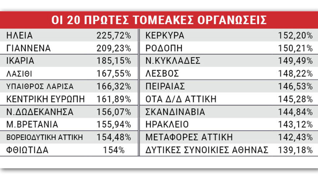 Πρώτη την «καρό» σημαία είδε η ΚΟ Ηπείρου με 161,52%, η οποία από τότε που προπορεύτηκε δεν άφησε τη θέση του οδηγού. Στη δεύτερη θέση με την εκπνοή ανέβηκε η ΚΟ Αιγαίου με 145,99%. Για λίγο έχασε το δεύτερο σκαλί του βάθρου η ΚΟ Ανατολικής Στερεάς και Εύβοιας με 145,12%, όντας όμως στην πρώτη τριάδα και κάνοντας μια εντυπωσιακή κούρσα στα τελευταία μέτρα. Ακολουθούν η ΚΟ Κρήτης με 138,78% και η ΚΟ Εξωτερικού με 135,12%. Στην 6η θέση είναι η ΚΟ Αττικής με 132,61%. Στο 131,13% σταμάτησε η ΚΟ Ανατολικής Μακεδονίας – Θράκης και ελάχιστα πιο πίσω με 130,88% η ΚΟ Θεσσαλίας.